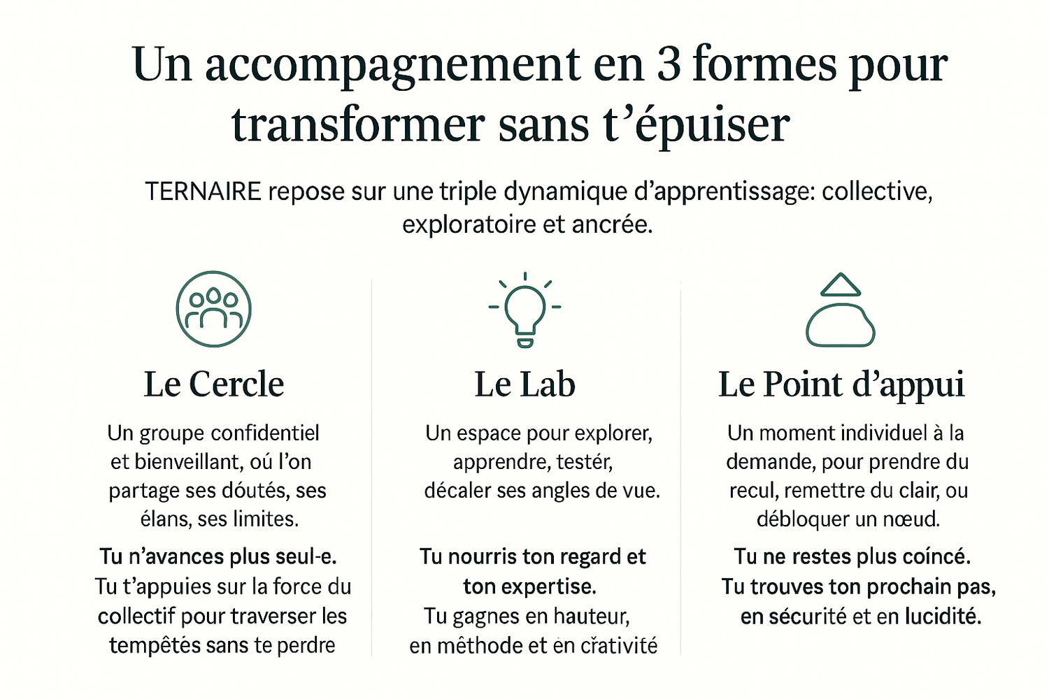 C’est aussi notre façon d’avancer : Un cercle pour penser, Un lab pour explorer, Un point d’appui pour agir.