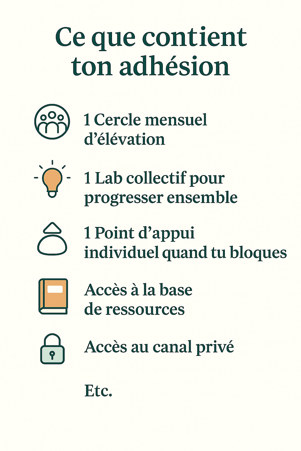 Chaque mois, une session guidée. Un thème fort, des outils exigeants, des échanges vrais. Un espace pour penser autrement, muscler vos compétences, et ancrer votre posture sans vous couper de ce qui vous anime.